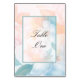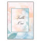 Coloque suas mesas de jantar de casamento com esta elegante e simples carta de número de água pastel. Tudo isso é feito em um belo design de flor de aquarela pastel em pinks macios e azuis. Neste caso, o texto está em ambos os lados do cartão, ou você pode removê-lo e usar apenas um lado. A fonte e as cores são personalizáveis de acordo com o seu gosto.