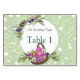 Flores brancas, amarelas, cor-de-rosa, amarelas e azuis da primavera em cestos e buquês para o tema do papel de carta de casamento para personalizar números e cartões de nome para cada busca na mesa.