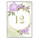 Belo cartão botânico de números de mesa com flores roxas românticas com algumas folhas verdes na coroa dourada. Os detalhes da brilho dourada são simulados. PARA MAIS PRODUTO CORRESPONDENTE, clique na coleção acima ou entre em contato comigo.