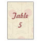 Um cartão de mesa bem projetado, ambos os lados tem uma flor vermelha florada na design. . O número da tabela é escrito com tinta arrojada. Design de mesa: WeddingsbyRhoadie Floral trabalho de arte: Prettygrafik design (https://www.etsy.com/shop/Prettygrafikdesign)