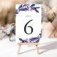 As placas de números de tabela botânica elegantes contêm fontes de folhas botânicas azuis e roxas vibrantes ao redor do número da sua mesa. Design repete-se no lado oposto. Coordena com nossa coleção de eventos Abundant Foliage Violet.