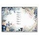 O design apresenta um arranjo etéreo e macio de tons sujos, azuis e mudados, com folhagem delicada, bagas e flores que circundam as bordas. A estrutura é predominantemente decorada com folhas do estilo aquarela, flores de algodão e bagas escuras, dando a ela uma sensação rústica mas elegante. A área central é deixada vazio, ideal para texto ou detalhes de eventos, cercada por formas orgânicas que evocam um humor sereno e autóctone. Este sofisticado, inspirado na natureza funcionaria lindamente para uma coleção de casamentos com uma atmosfera romântica e eterno.