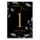 Um roteiro preto e dourado com eucalipto ondulante suave deixa um elegante cartão de número de casamento e de tabela de eventos que pode ser personalizado com qualquer número de tabela. Os gráficos aparecem em ambos os lados desta placa.