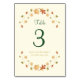 O romance do outono é capturado neste número de tabela. Folhas caídas em cascata no cartão, em uma torrente de vermelhos, laranjas e dourados contra um fundo creme. As folhas de carvalho e de carvalho são destacadas. Personalize seu nome e data em ambos os lados. O outono está no ar com esta suíte elegante.