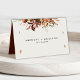 Elegante cartão de lugar de casamento rústico no outono com o nome do convidado impresso, apresentando folhas de eucalipto marrons, vermelhas, laranjas e verdes. Por favor, entre em contato comigo para qualquer ajuda na personalização ou se você precisar de qualquer outro produto com este design.