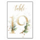 Linda cartão de número de mesa com um motivo botânico - uma ilustração de aquarela de folhas verdes e douradas. Mesa 19. Por favor, verifique todos os números disponíveis