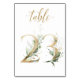 Linda cartão de número de mesa com um motivo botânico - uma ilustração de aquarela de folhas verdes e douradas. Mesa 23. Por favor, verifique todos os números disponíveis