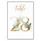 Linda cartão de número de mesa com um motivo botânico - uma ilustração em aquarela de folhas verdes e douradas. Mesa 28. Por favor, verifique todos os números disponíveis