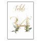 Linda cartão de número de mesa com um motivo botânico - uma ilustração de aquarela de folhas verdes e douradas. Mesa 34. Por favor, verifique todos os números disponíveis