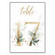 Linda cartão de número de mesa com um motivo botânico - uma ilustração de aquarela de folhas verdes e douradas. Mesa 17. Por favor, verifique todos os números disponíveis