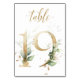 Lindo cartão de número de mesa com um motivo botânico - uma ilustração em aquarela de folhas verdes e douradas. Mesa 19. Por favor, verifique todos os números disponíveis