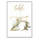 Linda cartão de número de mesa com um motivo botânico - uma ilustração de aquarela de folhas verdes e douradas. Mesa 25. Por favor, verifique todos os números disponíveis
