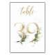 Linda cartão de número de mesa com um motivo botânico - uma ilustração de aquarela de folhas verdes e douradas. Mesa 39. Por favor, verifique todos os números disponíveis