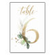 Linda cartão de número de mesa com um motivo botânico - uma ilustração de aquarela de folhas verdes e douradas. Mesa 6. Por favor, verifique todos os números disponíveis