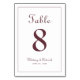 O sinal de festa do evento de Número de Tabela de Casamento design apresenta uma elegância clássica com burgundy contemporânea sobre um fundo branco nítido. Personalize a design de mesa de casamento com seu nome, data de casamento e número de tabela em letra de tendências e roteiro. A parte traseira da placa é uma duplicata da parte frontal. Siga a nossa modelo moderna fácil utilização para personalizar e encomendar facilmente uma para cada mesa com os seus números de tabela individuais. ***** Este modelo precisa ser ajustado com a ferramenta design para centralizar visualmente os números de tabela de dois dígitos dez e maiores. **** Entre em contato conosco em invitationsuites@gmail.com ou usando o link de mensagem nesta lista se tiver perguntas, precisar de assistência ou se tiver uma solicitação de cor personalizada para este design.