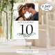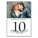 Decorra as mesas de recepção de casamento com memórias de fotos nos sinais de números de tabela. Esses sinais de 3,5x5" apresentam uma foto em cada lado (o mesmo ou diferente), nomes e um sotaque verde-aquarela. Incluir várias fotos da noiva e fotos de noivado do noivo ou fotos de namorando ao longo dos anos para entreter convidados na mesa e enquanto eles se misturam. ALTERAÇÕES: O texto preto ou a cor de fundo podem ser alterados para coordenar com as cores do casamento e o verde pode ser excluído se não for desejado. ASSISTÊNCIA: Para obter ajuda com a modificação ou personalização do design, alteração de cor, redimensionamento ou transferência do design para outro produto ou conversão para um arquivo de Download Digital, entre em contato com o designer ANTES DE PEDIR através da guia MENSAGEM de Bate-papo Zazzle abaixo ou envie um email para makeitaboutyoustore@gmail.com.