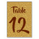 Um cartão de número de mesa de casamento monograma elegante com números de burgundy em um efeito de fundo dourado. O estilo, cor e posicionamento da fonte também podem ser alterados de qualquer maneira.