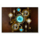 Lentes de turquesa com relógio antigo com engrenagens de latão e chaves de ouro sobre fundo enferrujado e marrom. Estilo Steampunk.