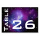 Adicione um número de tabela a uma imagem de espaço de um aglomerado de galáxias azul e roxa. Crie seus próprios números celestes da mesa de casamento. Você pode personalizar o estilo de fonte para corresponder aos outros designs.