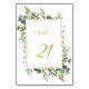 Mesa 21. Verifique todos os números disponíveis. | Este número da tabela de casamento apresenta cor d'água, eucalipto verde e folhas verdes, pintadas com uma falso cor dourada, estrutura retangular, texto e número. Para uma personalização mais avançada deste design, clique no BOTÃO FERRAMENTA DESIGN AZUL acima!