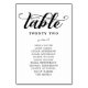 Simples tabuleiro de casamento preto e branco com caligrafia "mesa", número em preto e nome de hóspedes. Para mais personalização, clique no link "personalizar mais" e use nossa ferramenta design para modificar esse modelo.