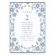 Numeração De Mesa Gráfico Floral de Assentos de Azul Encharcado