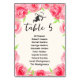 Cartões com uma lista de seus convidados, número da mesa, uma silhueta de uma senhora em seu chapéu Derby (a senhora pode ser removida) cercada por uma fronteira de rosas rosados. **NOTA: ALTERE O NÚMERO DA TABELA, coloque no carrinho de compro para cada número que você deseja solicitar. CORRESPONDENTE a itens na nossa coleção.
