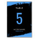 Cartão de número da tabela Mitzvah, Bar azul e preto legal. Fontes modernas com fundo preto e azul esbranquiçado. // ALTERAR O NÚMERO DE CADA MESA DE QUE PRECISA E ADICIONAR UM DE CADA VEZ AO SEU CARTÃO //