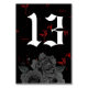 A textura preta e vermelha grunge marcante como base para este design gótico com rosas pretos lindos. A caligrafia vitoriana em branco cria contrasta e enfatiza a estética. Personalizar com o número da tabela. .