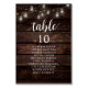 Cartão de Mesa de Assento de Convidado do Janto de Casamento, Script Russo Moderno, Semáforos de Cordas com Mason Jar, Fundo da Madeira Escura Personalize o texto e/ou remova e preencha com o tema de sua festa de casamento.