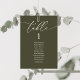 Cartão de Mesa de Assento de Convidado do Janto Casamento, caligrafia romântica moderna Clássica de Clássica Olive Green temed. Personalize o texto e/ou remova e preencha com a cor correspondente à festa de casamento.
