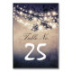 Esta placa de número da mesa é perfeita para o casamento ao ar livre sob a árvore decorada com uma corda de luzes