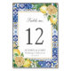 Projetado para coordenar com a nossa coleção Lemon Mediterrânica, esta elegante placa de número de tabela apresenta lindos limões de aquarela, amarelo floral e verde Personalize cada placa com um número de tabela e seus detalhes, basta pressionar o botão personalizá-la para reorganizar e formatar o estilo e a colocação do texto. c) O Feliz Cat Studio