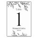 Um número de mesa floral de arte de linhagem branca minimalista, com uma representação desenhada à mão de um rosa, botões e folhas.