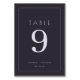 This elegant table card design exudes a sophisticated and modern vibe, perfect for a chic wedding celebration. The minimalist layout features clean typography with a large, prominent number at the center, surrounded by simple yet stylish text elements. Set against a dark background, it creates a striking contrast that highlights the refined aesthetic. Ideal for adding an air of understated elegance to your special day, this design seamlessly blends functionality with contemporary style, ensuring a memorable touch for your guests' dining experience.