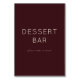 This elegant tabletop sign features a minimalist design with a rich, deep maroon background that exudes sophistication and warmth. The clean, modern typography invites guests to indulge in sweet treats at the dessert bar, making it perfect for adding a touch of class to any wedding reception or celebration. Its simple yet stylish aesthetic ensures it blends seamlessly into various decor themes while maintaining an inviting and welcoming mood. Ideal for guiding guests towards delightful desserts, this sign enhances the overall ambiance of your special event.