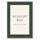 This elegant tabletop sign features a minimalist design perfect for a wedding dessert bar. The clean, classic typography and simple layout exude sophistication with its neutral color palette of white and dark green. Ideal for adding a touch of understated charm to your reception, it invites guests to indulge in sweet treats while maintaining an air of refined elegance. Its customizable text area allows you to personalize the message, making it versatile for various special occasions.