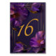 Guide guests in elegant style with the Luminous Violets Wedding Table Number Card, a refined reception detail designed to bring beauty and cohesion to your tablescape. Featuring luminous violet florals, rich jewel-toned purple hues, and graceful gold framing, this table number card adds a polished, upscale touch to formal receptions, romantic evening weddings, and black-tie celebrations.
