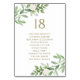Adicione um belo sotaque botânico à sua cola com a placa de números de tabela verde personalizável. Apresenta ilustrações em aquarela de flores brancas e verde. Personalize este cartão verde adicionando seus próprios detalhes. Estes números são perfeitos para qualquer evento.