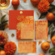 Numeração De Mesa Mandarim Luxuoso Laranja e Casamento Dourado