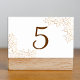 Personalize esses números de tabela de Casamentos outono de borda folha de folhas mapeada em madeira e crie uma placa diferente para cada mesa na recepção ou chá de panela de setembro, outubro ou novembro. Estas placas de números de mesas de terra firme e costurada apresentam um cartaz marrom que enfeita os cantos com fundo branco.