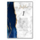 A borda esquerda desta elegante e moderna placa de número da mesa de casamento apresenta uma marinho azul de aquarela agata borda aparada com falso brilho dourado. A palavra "mesa" aparece em um guião de escrita manuscrita dourada sobre uma cinza e fundo de mármore branco. Adicione o número da tabela e os nomes dos convidados que estão atribuídos a cada mesa.