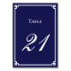 Crie o seu marinho e os cartões brancos da mesa de núpcias em um estilo clássico de caligrafia, em conjunto com uma bela fonte moderna, estilo boné. Você pode personalizar todas as cores nesta design para combinar com sua paleta de cores de casamento. Uma borda de estilo de chave grega azul-marinho branca e escura minimalista para as suas placas de números de tabela.