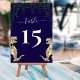 Cartão de Número da Mesa Núm do Dinossauro Engraçado Jurássico T-Rex Bride & Groom dinos com fundo azul marinho verde eucalipto e elegante roteiro branco Adicione um toque de encanto pré-histórico às suas mesas de casamento com este cartão de número da mesa de casamento com o humor dinossauro, com uma ilustração de cor da água branca de uma noiva T-Rex e noivo em castanho e beigão Matizes e folhagem de eucalipto. Comparado a um rico fundo azul marinho, este design de número de tabela único combina a diversão Jurássica com a elegância moderna. Perfeito para um dinossauro ou casamento no tema Jurássico, este número de tabela personalizável inclui modelos editáveis para que você possa adicionar facilmente seus números de mesa enquanto corresponder ao resto da decoração do casamento. A tipografia moderna na moda branca e nítida, combinada com fontes elegantes de escrita, dá-lhe uma aparência elegante e coesa para a sua recepção. Ideal para casamentos ao ar livre, celebrações de destino temático de dinossauros Jurássicos, ou casais que simplesmente amam dinossauros, esses números de mesas ajudam os convidados a encontrar seus assentos enquanto adicionam um toque divertido e pessoal ao dia do seu casamento.