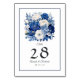 Cartão de número de tabela floral azul e branco de marinho personalizável para suas especificações de evento.