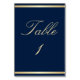 Este Cartão de Número de Tabela de Casamento Azul e Dourado é projetado com texto Dourado colorido e bordas em um fundo de Marinho. Para adicionar os números de tabela, basta inserir um número - por placa solicitada - no nosso modelo fácil, substituindo o texto de amostra - mostrado como 1. Observe que o número será repetido automaticamente no verso.