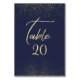 Um toque de poeira estelar de ouro em um fundo de Marinho adiciona uma aparência elegante a este Número de Tabela de Recepções de casamento. O texto frontal diz: Mesa, com os números individuais. O inverso é uma duplicata do lado frontal. Para adicionar números de tabela individuais, basta inserir um número em cada cartão necessário. O número é repetido automaticamente no reverso. Certifique-se de ver o Marinho inteiro e a Dourada Coleção de Casamentos de Stardust para peças correspondentes.