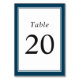 Clássico e elegante, este design de placa de número de tabela tem uma borda dupla em azul marinho com um fundo branco. Os números são impressos de forma destacada em ambos os lados da placa. Para criar um cartão para cada mesa, personalize o texto da mesa um e adicione ao cartão. Em seguida, crie a placa para a mesa 2 e adicione ao carrinho. Repita estas etapas para cada mesa que você terá no seu casamento, banquete ou evento.