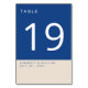 Personalize estas modernas placas de números da mesa de casamento Marselha Bleu em uma nítida sombra de azul marinho emparelhada com náua e branca. *** EDITAR CADA CARTÃO PARA CADA NÚMERO DE TABELA NECESSÁRIO UM DE CADA VEZ E ADICIONAR AO CARTÃO *** A design minimalista desses cartões personalizados de números de tabela com espaço para seus números de mesas e os nomes da noiva e noiva e da data de casamento no fundo se presta a temas modernos de casamento, assim como eventos mais ocasionais e é uma bela paleta colorida para qualquer estação, primavera, verão, outono ou outono inverno.