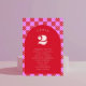 Decorre suas mesas de casamento com este moderno cartão na moda, com padrões modernos de meio século rosa e vermelho, arco e texto personalizado de sua escolha. Adicione facilmente seus próprios detalhes clicando na opção "personalizar".